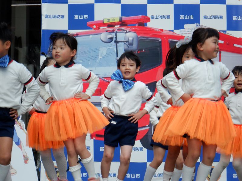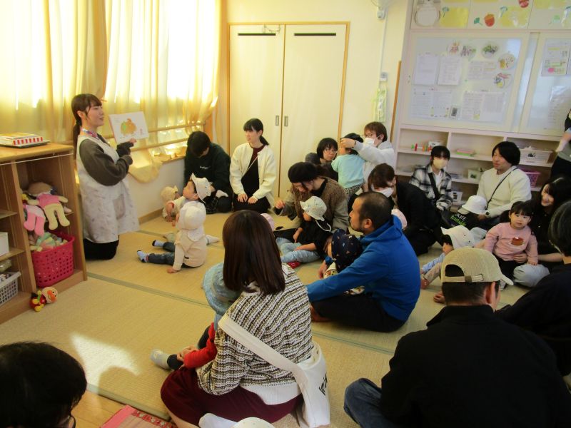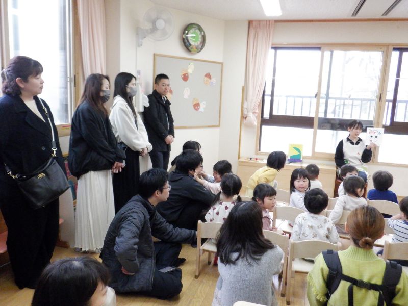 富山県防犯協会より来園され、不審者対応の仕方を実践や紙芝居を通して教えていただきました。